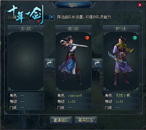 《十年一剑》全新的组队功能,玩家可以创建一个上限为3人的作战团队,每名玩家可以自带一名家将参与战斗。三名玩家分别按照主战,助战和护法的战斗位置依次排开,各司其职。作为队伍中第一位出场战斗的队员,主战靠的是超强的攻击力在战斗先期给对手以沉痛打击。既然是团队作战其它两个人。当然也不能闲着,助战会每间隔几秒就会帮主战抵挡伤害一次,抵挡时间与助战防御有关,护法则是每隔几秒帮助场上战斗人员恢复一定生命点数,恢复的生命量和护法的生命上限相关。队伍中3个人有攻有守,有防有补,形成了一个有机的战斗组合,每个人扮演的角色都很关键,一个都不能少。