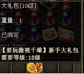 10级新手礼包:每10级可开启一次,内含大量宝物