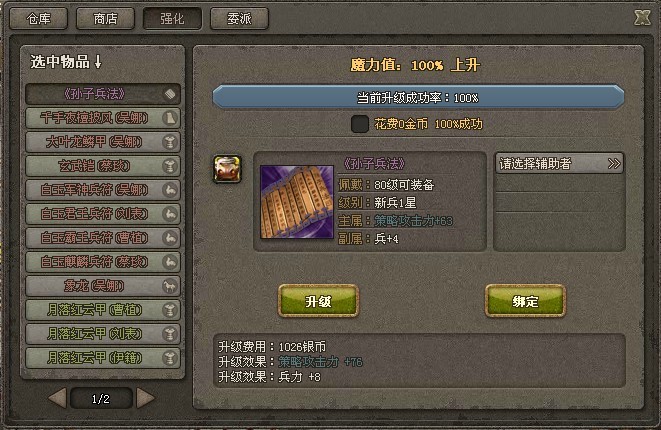 装备升级:装备每次升级其属性都会进行成长。装备共分为白色,蓝色,绿色,橙色,红色五个品质。品质越高,属性提升的幅度越大。装备升级的成功率由魔力值决定,魔力值每小时变化,尽量选择魔力值高的时候进行升级。