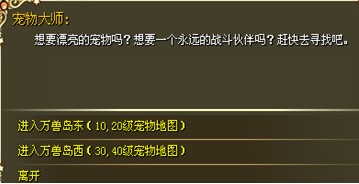 除了通过任务获取宠物外,玩家等级达到10级后,还可以通过星耀城的宠物大师处,进入万兽岛进行宠物捕捉。