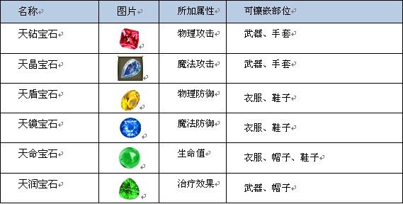 每一类型的宝石都分为10种,等级越高的宝石属性越高。