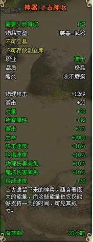4、拥有上古神兵碎片超过3分钟即可离开地图,通过四大金刚离开地图时即可获得神器“上古神兵”,拥有使用权限24小时。