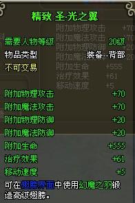 玩家在20级的时候,通过完成主线、支线任务,将可获得装备等级20翅膀:光之翼.