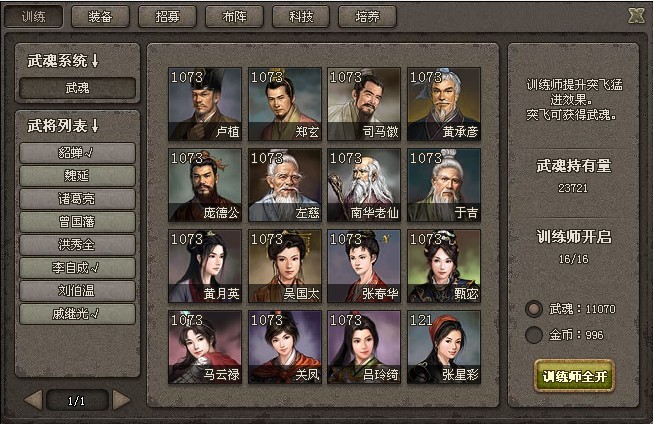 训练师的使用:训练师进行突飞武将会获得额外的收益。每次突飞后将减少一次使用次数。