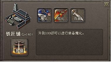 购买,强化装备的场所。商店等级越高所强化装备的上限就越高,购买到的物品也越多。主城升到10级后,强化魔力值将开始浮动变化。
