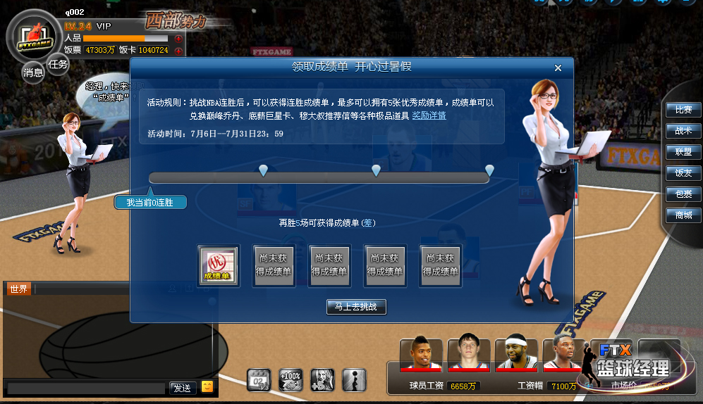 从7月7日开始到7月31日23点59分,《范特西篮球经理》全服将重磅推出【领取“成绩单”,开心过暑假】活动。
