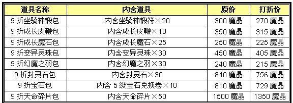 活动期间,在活动期间,商城将推出多种商城道具折扣礼包,限时活动,逾期不候。
