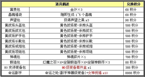 2、活动结束后积分清零,请各位玩家将积分在活动期间兑换,避免造成不必要损失