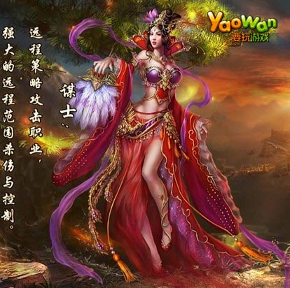 擅长远距离攻击,以扇作为武器,装备多为布衣、绸缎等轻材质制成。他们虽然看起来文质彬彬,甚至有些弱不禁风,却拥有超高的智商和渊博的知识,那看似优雅的一击却蕴藏着无穷的能量,并能够驾驭自然界的风火雷电协同作战,只要给他们一定的保护,他们会对战斗起到决定性的作用。