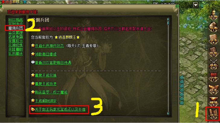 封王元宝退还操作封王价格前4位20万元宝,第5位开始30万元宝
