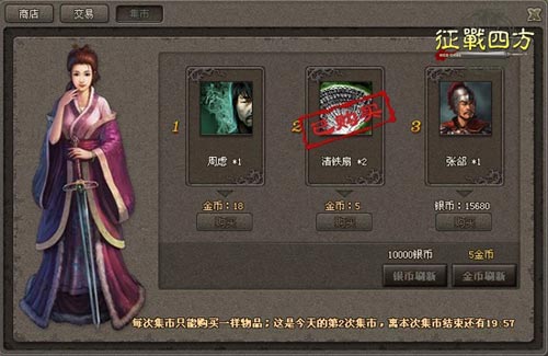 要玩征战四方游戏中,集市开放时间是每天最令人期待的时刻之一。在集市上,玩家能各取所需,获得想要的物品。无论是装备、银币、武将,还是访问令等应有尽有,可自由购买。多元化的设置不但给玩家提供了便利,也提高了游戏的乐趣。全天5个集市时段的设置可满足不同玩家的需要。