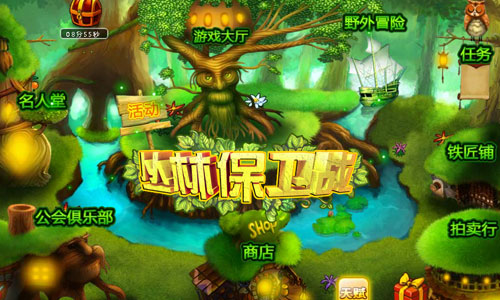 在进入要玩《丛林保卫战》之后,玩家们会看到一个翡翠的神秘森林。各种功能十分简单明了的标注在了每个建筑之上,让玩家们能够快速获得和享受游戏的各种功能。同时,在第一次进入游戏的时候,还会有一个贴心的教程,十分浅显易懂,让玩家们能够快速的掌握整个游戏的方法。