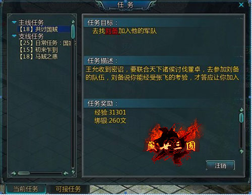 古话说:“知己知彼才能百战百胜”,这句话在要玩《盛世三国》游戏里面的任务系统体现得淋漓尽致。《盛世三国》的任务系统可以让我们通过做任务来了解游戏故事背景、升级、赚钱、获取装备和道具等等好处的重要途径,《盛世三国》以三国时期群雄争霸为故事背景,拥有庞大、丰富的任务系统。你可以在和朋友享受游戏乐趣的同时,体验到游戏恢宏的世界观。现在我们就来了解一下要玩《盛世三国》游戏里面的关于任务系统的上半部分知识。