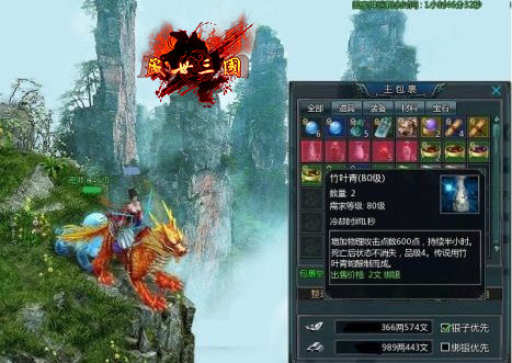 增强人物属性上,除了野兽丹之外,还有美酒佳酿也能增强玩家的人物属性。玩家只要在任务中通过打怪就有机会获得美酒佳酿,收集5个美酒佳酿后,通过物品合成可随机获得竹叶青、古井贡、群芳髓、流霞醉、杜康中的一种美酒。玩家使用美酒,其增强的人物属性只会保持半个小时。虽然得到美酒的几率很大,但是效果会有时间的限制,所以玩家可以根据自己的实际情况选择使用。