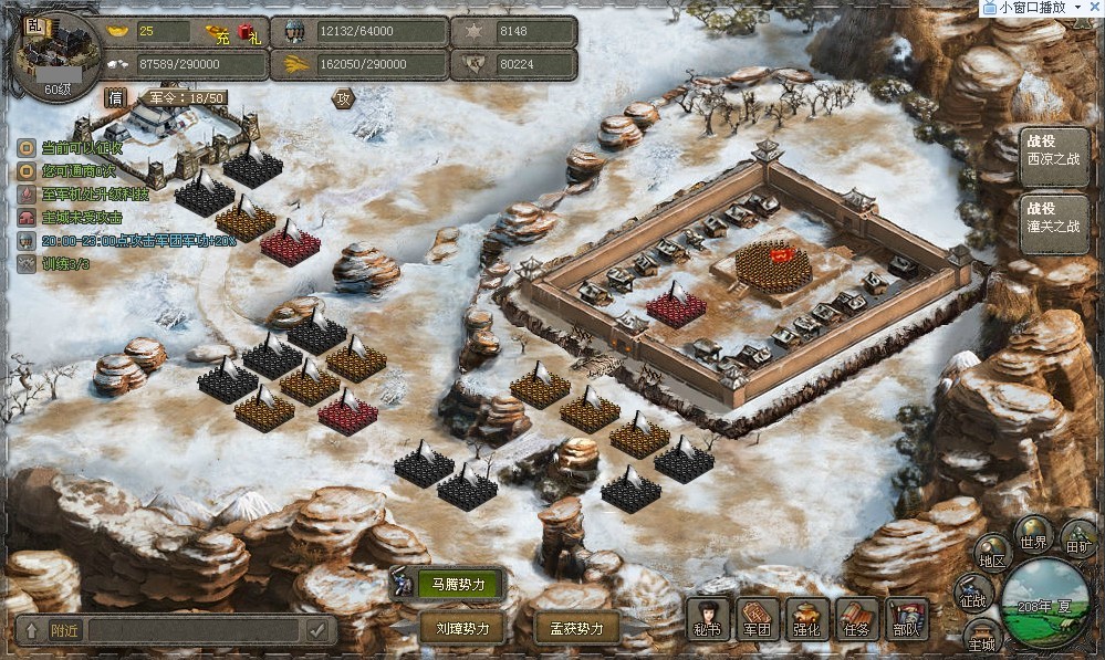征战场景:每个征战场景中都分布着不同的敌对势力。击败其中的敌军可以获得丰厚的军功奖励,还有几率掉落极品装备。消灭特定的敌对势力,才能进入高级区域发展。