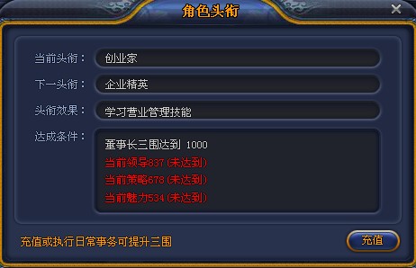 当角色三围达到一定的值时,角色便可获得相应的头衔,拥有头衔能学习相应的管理技能。管理技能是主角不可或缺的一项能力,拥有高等级的管理技能可以大幅提升角色管理公司的效率哦。