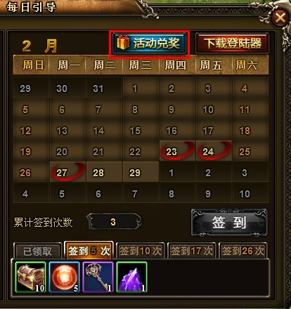 A:点击游戏右上角“奖励”进入每日引导页面再点击“活动兑奖”,在弹出的对话框中输入激活码序列号即可兑换奖励。