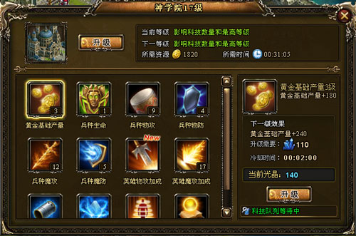 《神曲》中领主通过神学院可以研究各类科技。神学院的等级越高,领主可研究的科技数量越多,且研究科技的等级也越高。科技等级越高,大家的各属性或黄金产出也越高哦~