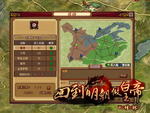 作为一个大商家,都深知“贸易”是多么的重要,通过在不同城市买入卖出货物赚取差价可让玩家们获得丰厚的利润!在要玩《回到明朝做皇帝》里,玩家们可以派遣伙计在不同城市之间买入和卖出特色产品,以获得利润的行为,通过不同城市对于特产品的需求量不同,合理的运用伙计参与到特产品买进卖出从而赚取利润。另外,贸易系统并非是一个完全独立的系统哦,这一切与伙计、商会等等都有紧密的联系。