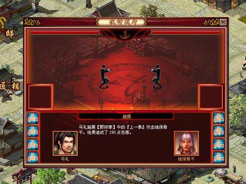 伙计使用的功夫结合当时朝代背景,有各路刀法、剑法、拳心法可供学习。每一种招数都需要通过相应的书籍来学习,学会以后可以在设计策略上使用此类技能的各种招数来进行PK。所以在街上见到卖武林秘笈的老头可要留意,也许你某个伙计骨骼惊奇是个练武的材料,保卫世界和平就交给你们了。