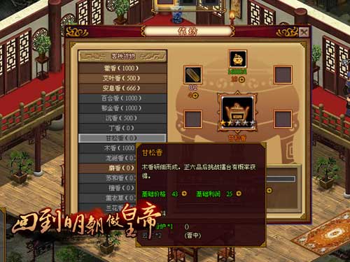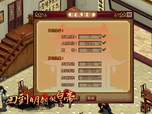 制作了商品之后接着就要上货出售了,这是游戏内铜钱的主要来源之一。玩家达到相应的官爵品阶后,消耗一些升级点数和铜钱就可以升级店铺了。升级后可以容纳更多的伙计和同时出售更多的商品,金钱滚滚取之不尽啊。祝各位在要玩《回到明朝做皇帝》店铺开张大吉,事业步步高陞!