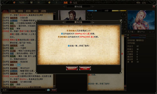 人物的属性,物品使用,装备更换,宠物的喂养等,显得一目了然,十分简便。再来看战斗系统,玩家的攻击速度决定攻击先后,全程观察战斗过程,战斗结束后还可以回放,敌方血量,属性,攻击伤害都可以在一个画面上表现出来,突出游戏的主旨轻松简洁的RPG类网游。
