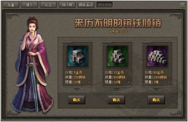 活动期间,游戏将开启金币购镔铁活动,玩家通过金币可直接购买镔铁;