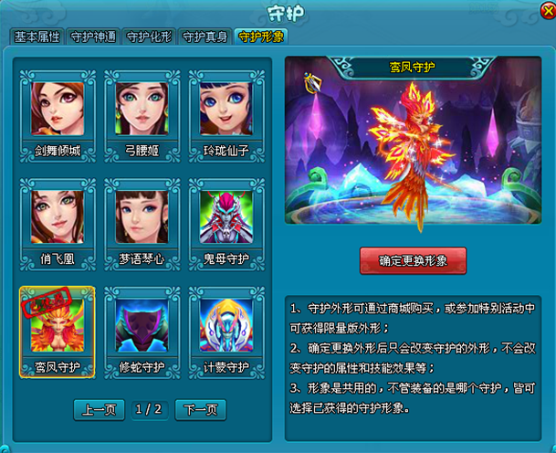 5.可在守护形象页面,随意切换您喜爱的守护形象。