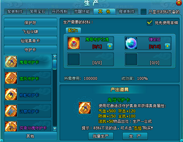 1.守护真身卡可通过对应守护之魂(副本掉落,活动获得)和禅定石(神秘商店,活动获得)于生产-其他界面合成。