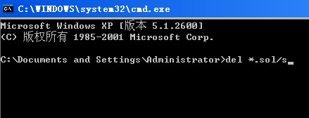3、点击确定后会出现一个命令提示符窗口,在里面输入del *.sol /s(注意del跟*.sol/s中间是有空格的)
