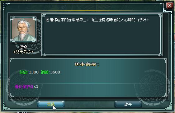 任务达成后,在指定交付的NPC处交任务。点击完成后交付任务,取得任务奖励。