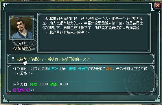 点击对话,对话完成后自动取得任务“传递平安”。