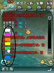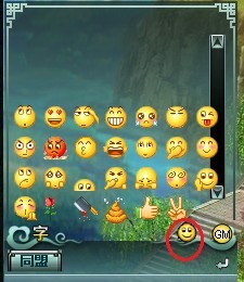 在文字颜色按钮右边的笑脸为聊天表情按钮;点击按钮后会出现多种表情,玩家左键单击表情即可把此表情发到聊天框中,可以继续编辑文字或发送到相应聊天频道。