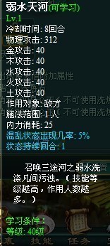 第一种、群攻类,分别有 野火燎原、多重缠绕、弱水天河、肉身桎梏和托体休眠。(攻击类法宝才有)