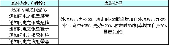 集齐全套职业专属套装即可获得强大的套装属性,以下套装有几率在副本、野外boss、神秘商店、功勋兑换和历险等方式获得。