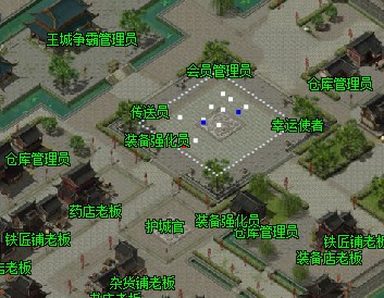 在整个游戏地图中,除了各个城市中心的一小块安全地带无法进行PK外,其它任何地点都可以进行任意PK。在擂台PK则不会增加PK值。在小地图可以查看安全区域范围(白色框内为安全区):