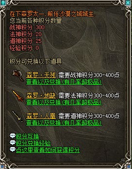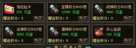 BOSS积分包括:战神积分、法神积分、道神积分、经验积分