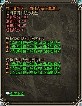 积分互换:(可以把职业积分兑换成经验积分,比例是2:1,然后再使用经验积分兑换其他职业积分)
