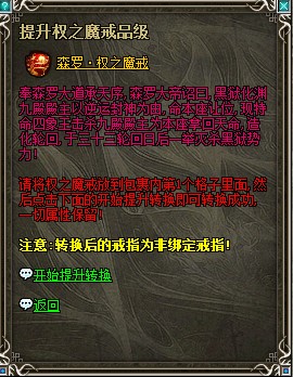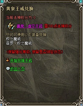 最新的更新资讯: 王之戒指再次给力调整,先让大家一睹为快。 PS:只有使用权之魔戒(绑定状态)的戒指兑换出来的黄泉戒指才是绑定,非绑定的森罗·权之魔戒兑换的黄泉戒指未非绑定。 ![]() ![]() |