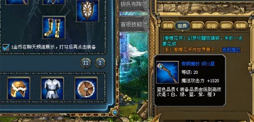 您也可以在“英雄装备”界面,勾选装备展示功能,在聊天频道展示装备,如下: