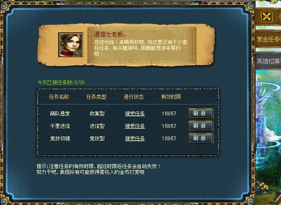 酒馆任务分为送信型、杀怪型、收集型以及竞技型四种,分别对应不同的奖励。