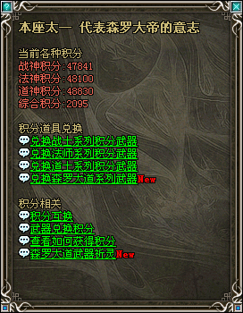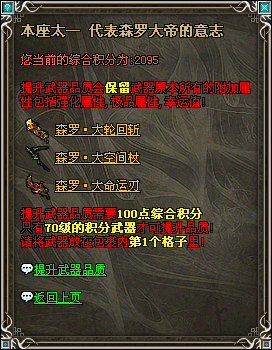 此次更新武器仍然以积分武器的形式推出,各位可在隐龙村至尊积分使者处进行兑换,闲话不多说,上属性图: