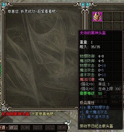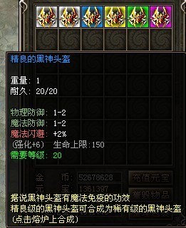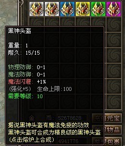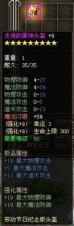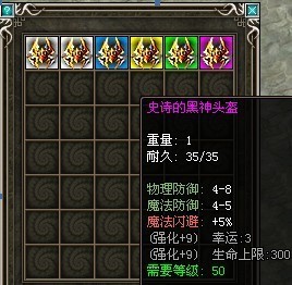 以下为强化+9激活隐藏属性后的史诗的黑神头盔