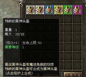 2、打造合成黑神装备在[熔炉(快捷键B)]里进行打造合成